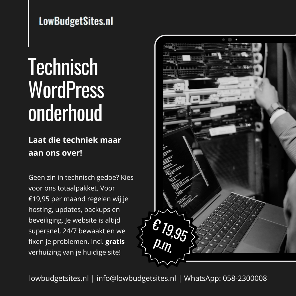Technisch WordPress onderhoud: Wij regelen de techniek, jij doet zaken